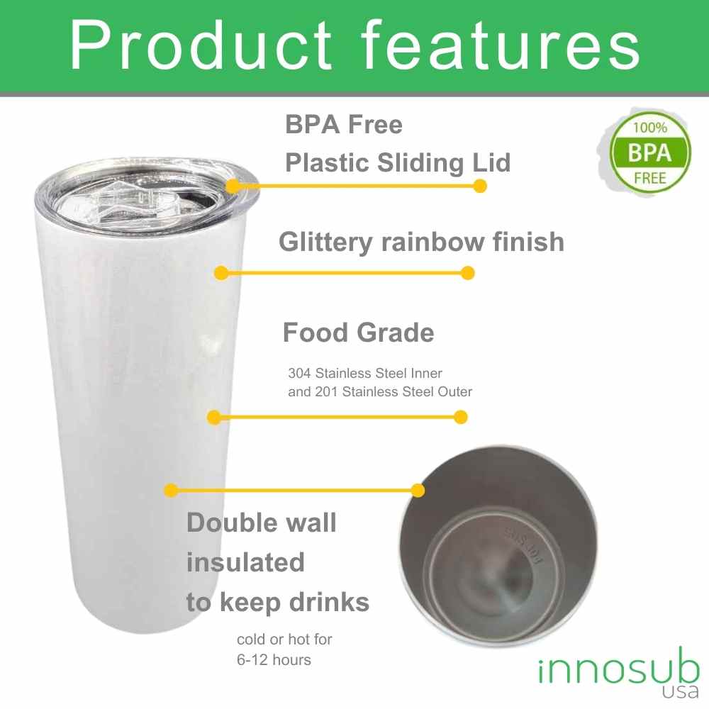 Give off the message that you have a vast array of items and are a hit in the DIY printing business with these Sublimation Printing Glitter 20 Oz Tumbler Blanks, Is your clientele coffee addicts? Wine drinkers? Or just Addicted to good old H2O? It doesn’t matter what they prefer to drink, just that you have the right sublimation tumbler to offer them in your shop! These tumbler blanks will be sure to be the best sublimation tumbler sellers you’ve ever offered. Also, these BPA tumblers are environmentally safe as food-grade tumblers!